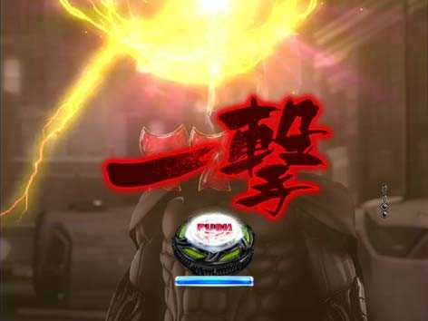 ゴッサム灼熱・監視モード共通のリーチ演出で、ボタンを使って怪人を撃破できれば大当りとなる。対決する怪人の種類や、バトル中に発生する多彩なチャンスアップ演出に注目。「ジョーカー乱入」や「コンボ発生」時はバトルに勝利すれば16R濃厚!?