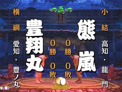 豊翔丸が出稽古で龍門部屋の力士と対戦。勝利期待度は相手力士が弱いほど高く、黒龍<暴流虎<熊嵐となっており、豊翔丸勝利で大当り!