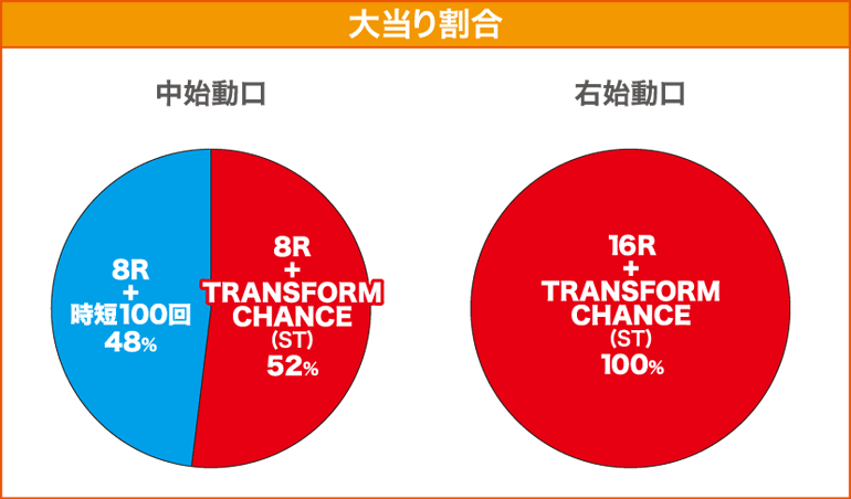 | 確変突入率 | ヘソ入賞時:52% 電チュー入賞時:100% (ST185回転) |