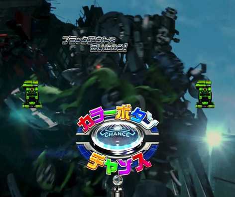 リーチ後に発生する強予告。群がトランスフォームしながら画面を通過する。