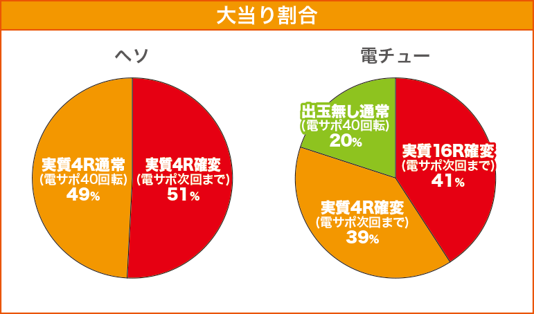 | 確変突入率 | ヘソ入賞時:51% 電チュー入賞時:80% |