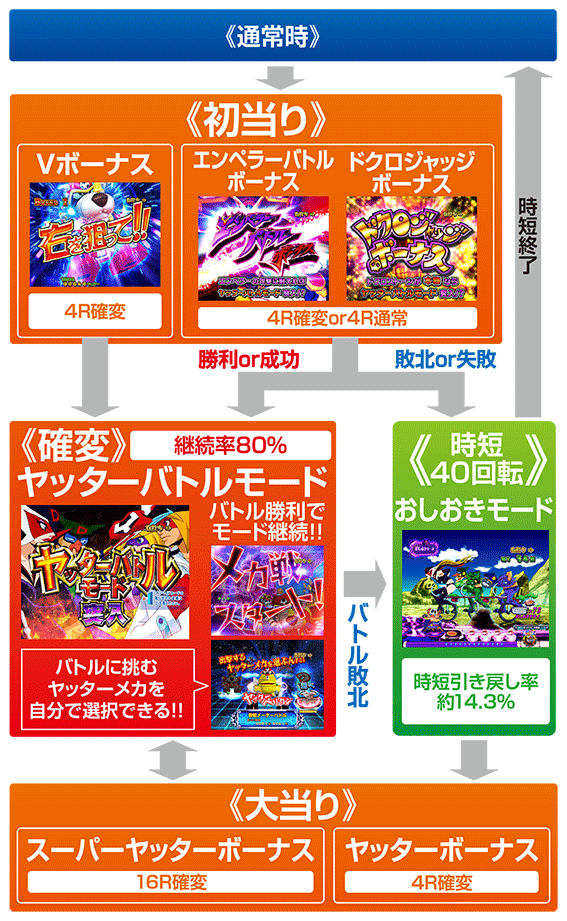 ★確変・ヤッターバトルモードは継続率80%で、バトル勝利時の約51%が16R大当り!!