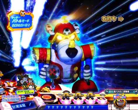 図柄揃いの初当りは当ボーナス。ラウンド中のバトル演出でヤッターワンが勝利すれば確変・ヤッターバトルモード突入、敗北すると時短・おしおきモードへ突入する。敵の攻撃が弱攻撃だったり、ジョグを回すパターンが発生すれば勝利期待度がアップ!