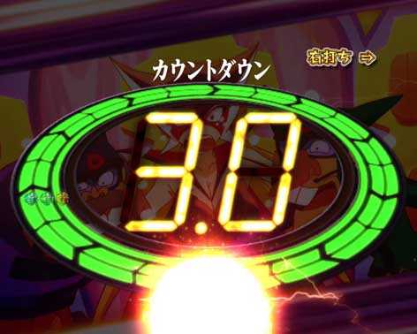 大当り直後に発生。ボタンを回して図柄が「7」に昇格すれば確変・ヤッターバトルモード突入濃厚!?