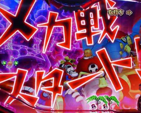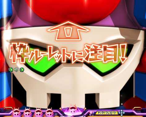 チャレンジは2種類で、発展時に好きな演出を選択可能。「枠枠ルーレット対決」は、ジョグを回して台枠の光がメガパトorボタンで止まれば大当り。「ビックリドッキリメカ対決」は、ボタンを押して敵のコアを破壊できれば大当りとなる。両チャレンジとも大当りは「ドクロジャッジボーナス」だ。