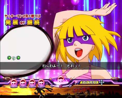 リーチ後に突入し、ヤッターマンが敵を倒すほど期待度がアップ。夜背景の真ヤッターRUSHなら大チャンス!!