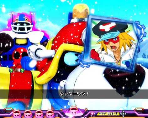 ヤッターアタックで上記の2リーチが選択できれば大チャンス。「タイムボカン・オールスターズ集結リーチ」は4大ヤッター演出のひとつで、歴代のヒーローたちが力を合わせて地球を救う本機最強リーチとなっている。なお、ヤッターアタックで「全回転リーチ」が選択肢にあれば超激アツ!?