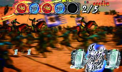 その名のとおり、呂布襲撃モードで登場する敵は「呂布」「呂玲綺」の2人のみ。呂玲綺はチャンスアップ。敵が登場した時は敵との距離がポイント。いきなり近距離だとピンチ!