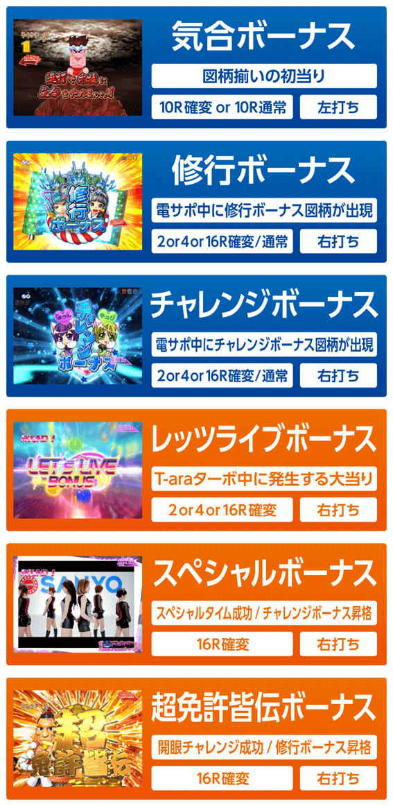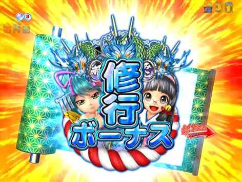 匠の極ターボや精進モード中に発生する大当り。ラウンド中に発生する修行に成功すれば匠の極ターボへ突入し、失敗した場合は精進モード突入となる。マル源ギミックが落下すれば16R確変の「超免許皆伝ボーナス」へ昇格!!