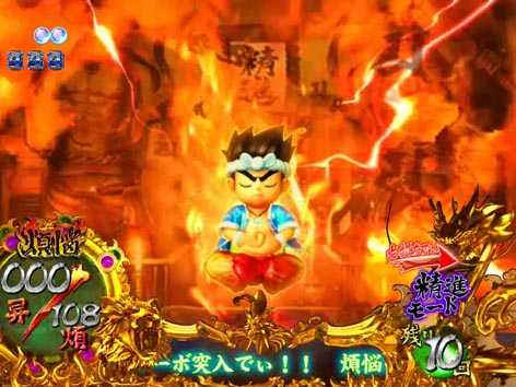 修行ボーナスやチャレンジボーナス失敗後に突入する、確変or時短の電サポ10回転。源さんが108個の煩悩を消し去れば匠の極ターボへ昇格!!