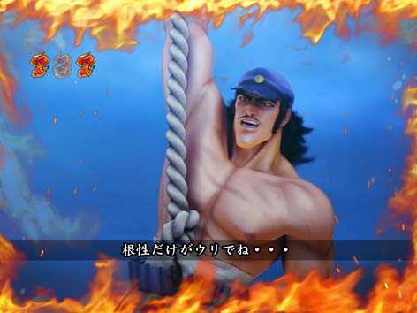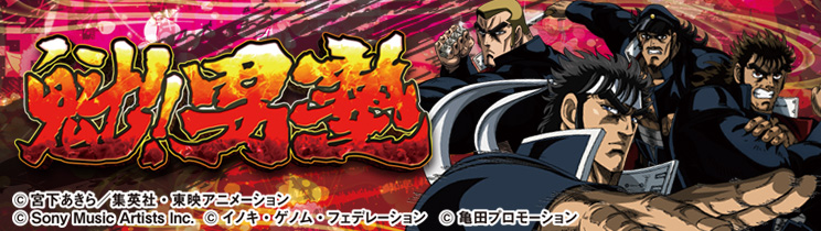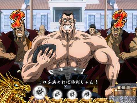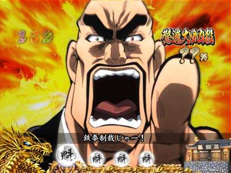 男塾の名物キャラ、田沢、秀麻呂、松尾の3人が活躍するリーチ。いずれも演出成功で、「驚邏大四凶殺」へ発展!