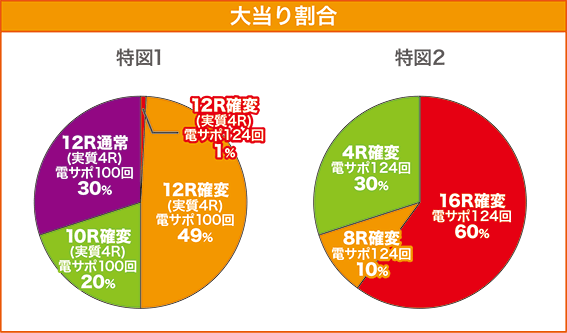 ★電サポ中の大当りは60%が出玉約2400個(払い出し)の16R確変!! ※電チュー入賞の大当りに限る。
