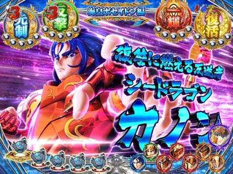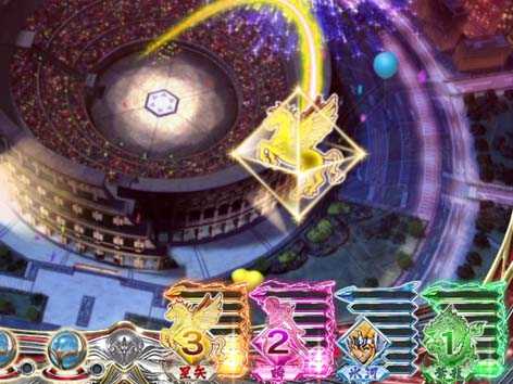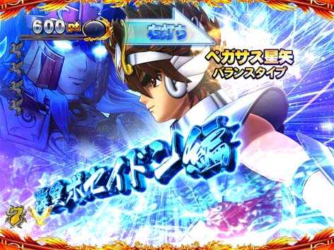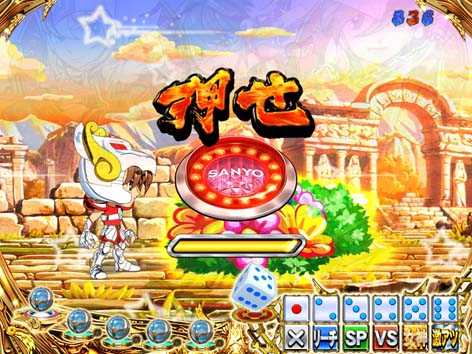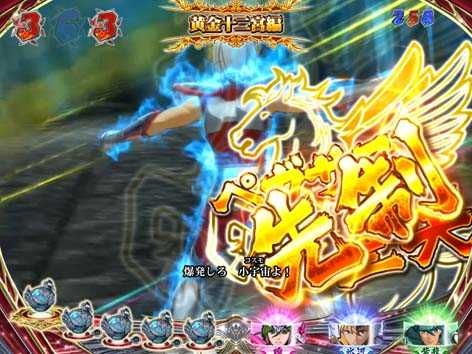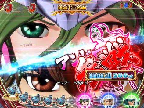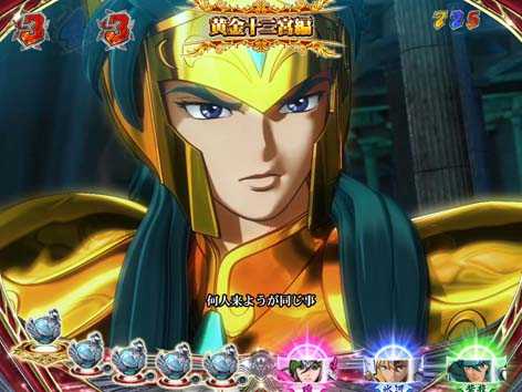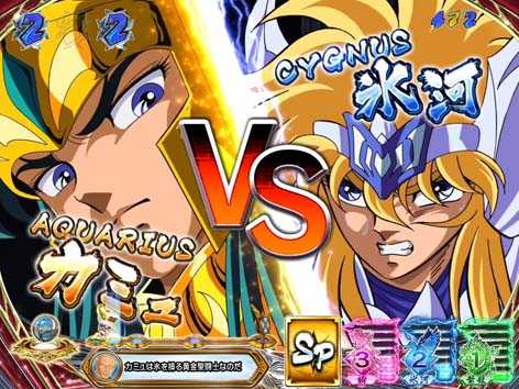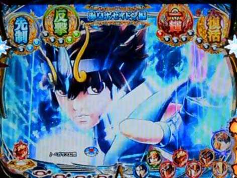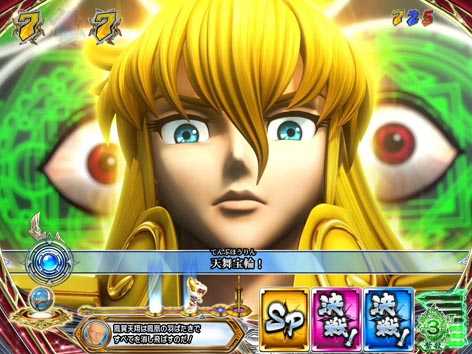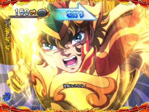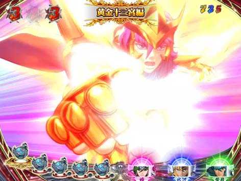 青銅聖闘士と黄金聖闘士が対決するリーチで全4種類存在。いずれも、3D映像の後半へ発展すれば期待できる。