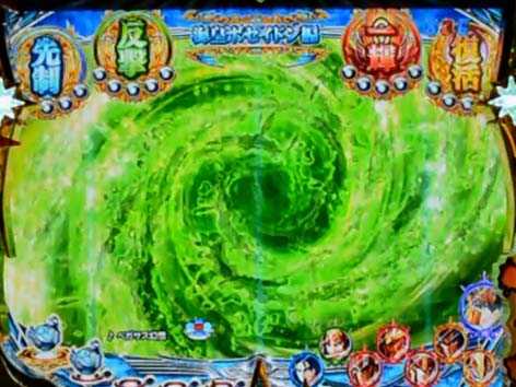 変動開始時の海皇ポセイドン登場から突入。ST「海皇ポセイドン編」中のバトルと同様のリーチへ発展!!