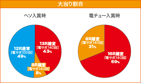 | 確変突入率 | ヘソ入賞時:51% 電チュー入賞時:100% (ST140回転) |