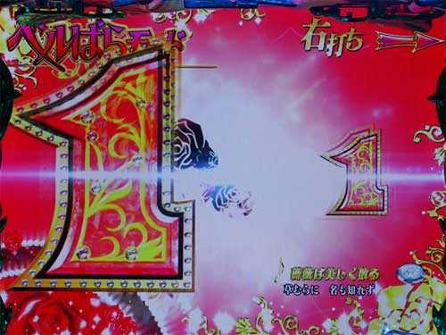 赤図柄揃いで突入し、ラウンド終了後は「ベルばらモード」へ。10ラウンドで終了と思いきや、ばら役物が作動すれば15Rに昇格。