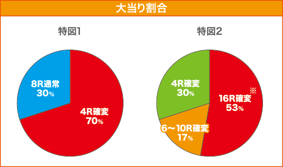 | 確変突入率 | ヘソ入賞時:70% 電チュー入賞時:100% (ST110回転) |