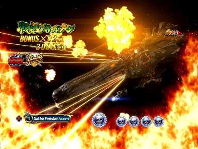 シューティングリーチから発展するリーチで、迫力のある戦艦バトルが展開。敵艦は全4種類で、「VSア・ドミラル」なら大当り濃厚。リーチ中はセリフの色やボタンなどのチャンスアップに注目だ!