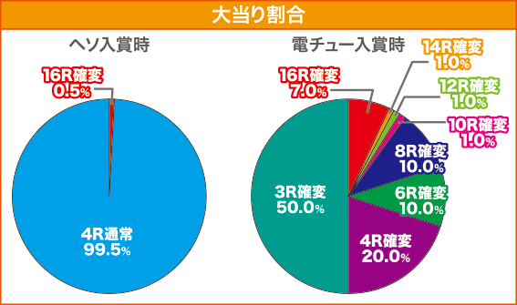 | 確変突入率 | ヘソ入賞時:0.5% 電チュー入賞時:100% (ST100回転) |