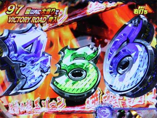 通常時における図柄揃いの大半で突入する4or16R大当り。7図柄揃いなら16R濃厚だ。4Rの場合は大当り終了後にチャレンジタイム(時短)突入、16RならVICTORY ROAD(ST)突入。