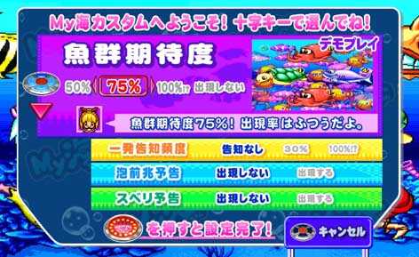 | 魚群期待度 | 50% / 75% / 100%!? / 出現しない | |