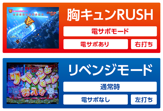 ファン図柄停止から発展。ボタン押しのリズムゲームに成功すれば、胸キュンRUSH濃厚のリズムボーナスに当選。楽曲は「胸が罵る」「言葉もなく」「LOVELY DAY」の3種類あり。