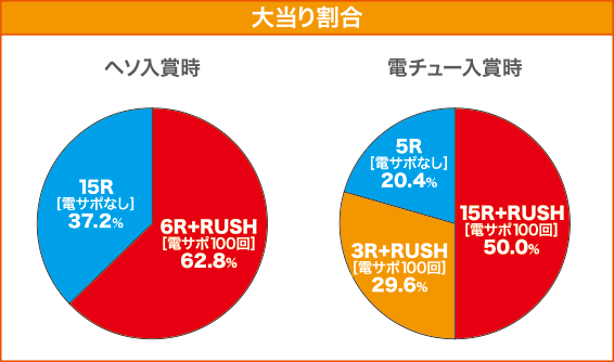 ★胸キュンRUSH中は右打ちをしてV入賞すれば大当り。RUSH中の大当りは50%が15R!!