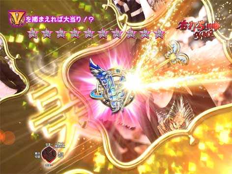 両モードとも獲得する「V」の色に注目。赤VならRUSH継続のチャンスで、金Vなら15R大当りの期待度がアップ!