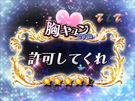 4大胸キュン演出からの胸キュンですねリーチ発展が王道パターン。他の実写系リーチも、金系のチャンスアップなどが絡めば期待できる。