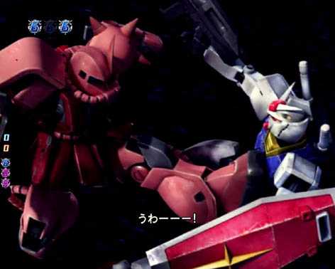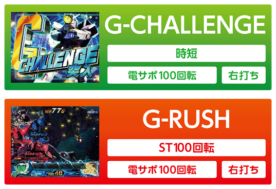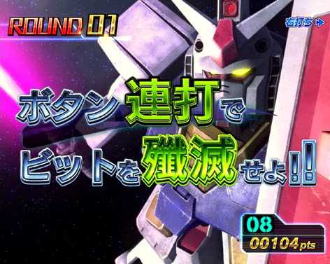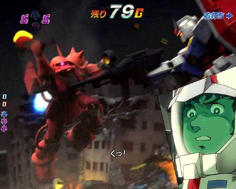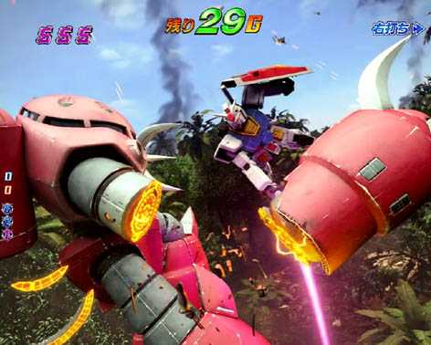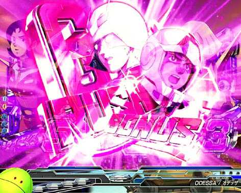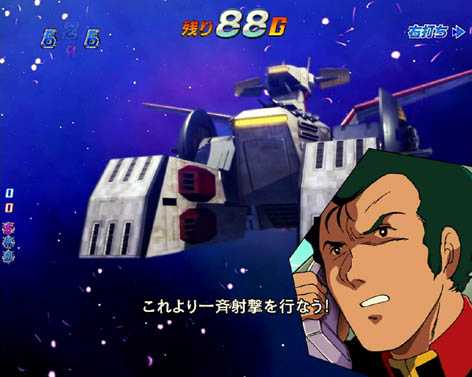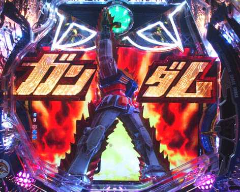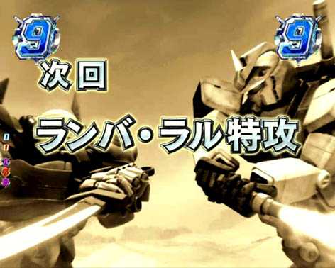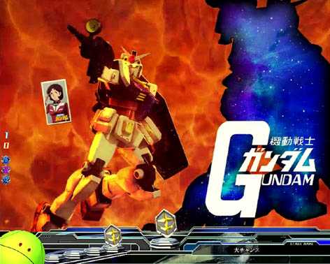 ガンダムが敵のMS(モビルスーツ)・MA(モビルアーマー)と対決するリーチで、全6種類存在。敵が「ビグ・ザム」や「ギャン」なら期待できる。どのリーチも後半へ発展すれば期待度アップ(ギャンなら…!?)。また、赤系のチャンスアップ発生やニュータイプゾーン突入で期待度60%オーバーとなり、一気に大当りが射程圏内に!!