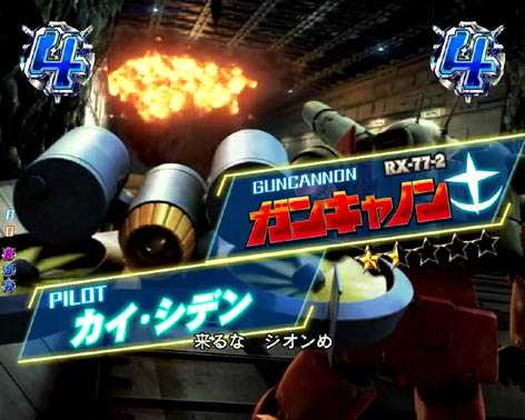 最初に選べるステージは上記の4種類。連邦軍側の3ステージは対戦するMS(モビルスーツ)・MA(モビルアーマー)の種類で期待度が変化し、ジオン軍側の「シャア・アズナブルMODE」はシャアが搭乗する機体で期待度が変化。連邦軍ステージの「ソロモン戦」は他のステージと若干ゲーム性が異なり、一発告知演出(画面右下のララァゲートが開く)が発生する可能性あり。また、初期の4ステージ以外にも、「ア・バオア・クー攻略戦」「EXバトル」「ZEON ACE PILOT MODE」の3つのステージが存在し、特定条件をクリアすることで開放される。