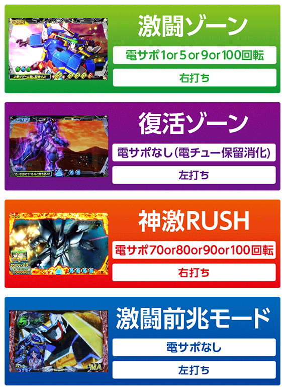 激闘ゾーンや神激RUSH終了後の電チュー保留で突入(電サポなし)。滞在中は激闘ゾーンと同様のバトル演出が発生し、激闘ゾーンや神激RUSH復帰のチャンスとなる。