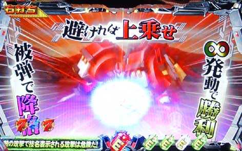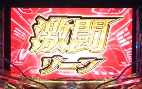 激闘ゾーン中はリーチ成立でバトル演出へ発展(突入1回転目はバトル発展濃厚)。インフィニティギミック発動でバトルに勝利すればBONUS+神激RUSH突入濃厚、敵の攻撃を回避すれば激闘ゾーン継続(ゲーム数上乗せ)、敵の攻撃を被弾してしまうと復活ゾーンへ降格する。