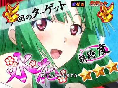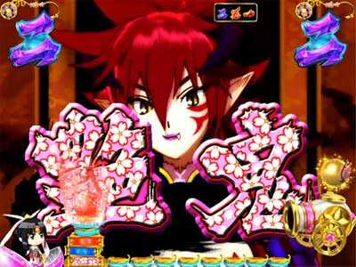 鬼姫が追いかけるターゲットのキャラにより期待度変化。また、ターゲット名の文字色でも期待度が変化し、赤なら激アツ、金or桜柄orレインボーなら大当り濃厚だ。前半(ST)と後半(時短)でも期待度は違い、前半なら発展した時点でアツい。