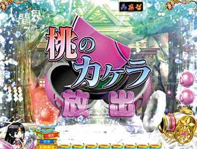 前後半の2段階あり、後半ではおともが桃子に憑依して鬼と闘う。後半のボタン演出で、赤ボタンが出現すれば激アツだ。