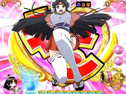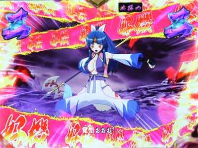 スーパーガチャで「皇天女からの贈り物」のカプセルを引き当てれば突入する5R確変。大当り後は「鬼鬼モード」に突入する。