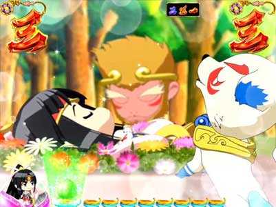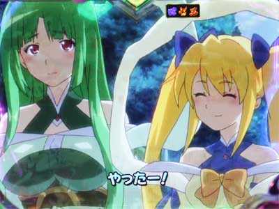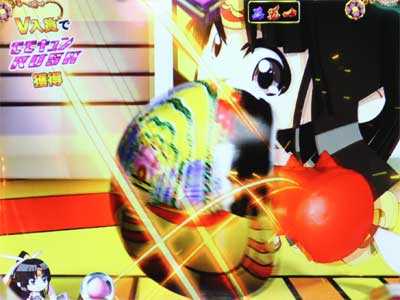 桃子と鬼姫が直接対決。鬼姫の剣を弾けば大当りだ。