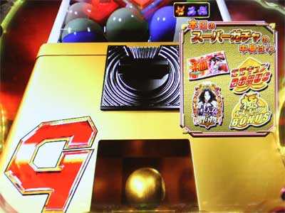 スーパーガチャ図柄停止で発展。カプセルの色で期待度が変化。中から楽園Gチケット出現でモード移行、皇天女からの贈り物やBONUSロゴ出現なら大当り濃厚。