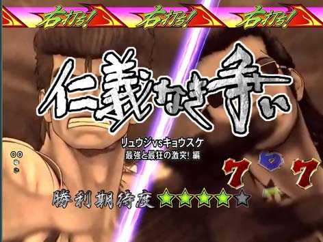 こちらも鬼浜シリーズではおなじみの演出。対戦カードや勝負の種類によって期待度が変化する。引き分け後にリュウジVSキョウスケのリーダー対決に発展すればアツい!