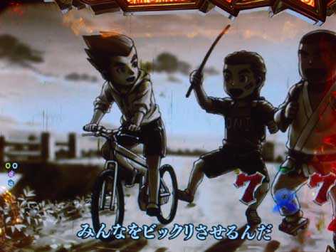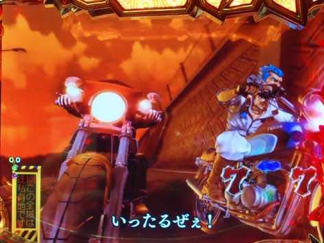 ノーマルリーチハズレ後に単車に乗ったリュウジが登場すると発展。揃った図柄が多いほど期待度アップ!?