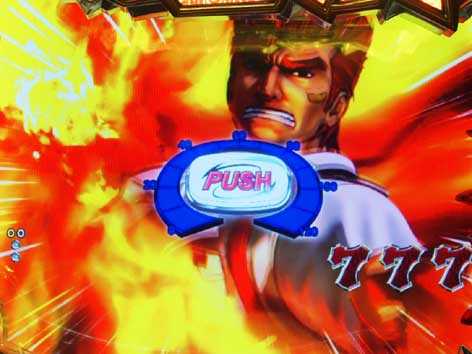 男ボーナス中に発生する昇格アクションで、ボタンを押して「狂乱麗舞」図柄が停止すれば、V入賞でST・狂乱麗舞へ突入。失敗した場合は時短・カッ飛び!!ZONEへ突入する。ボタンマークがカニ柄なら大チャンス!?