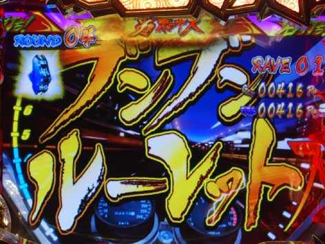 3・7図柄揃いや、友情挽歌図柄停止は15Rの「友情挽歌ボーナス」。ラウンド後はST「狂乱麗舞」へ突入。