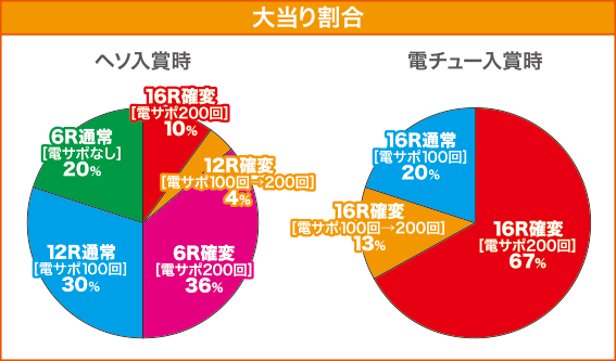 | 確変突入率 | ヘソ入賞時:50% 電チュー入賞時:80% (ST200回転) |