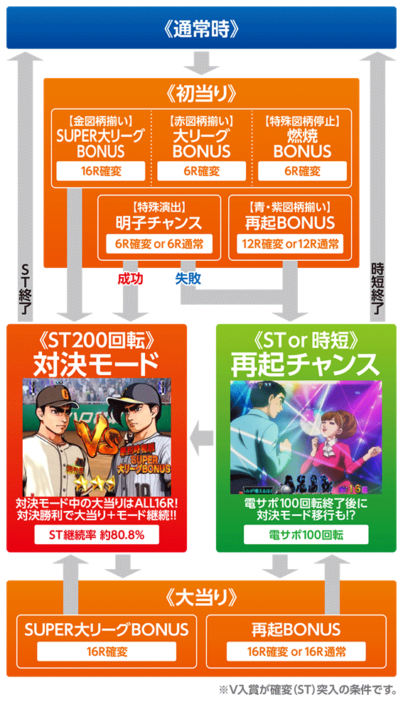 継続率約80.8%(ST中の当選期待度)を誇るST200回転のモードで、(SUPER)大リーグBONUS後・燃焼BONUS後・明子チャンスの演出成功時などに突入。滞在中は飛雄馬とライバルたちが野球対決を繰り広げる「対決リーチ」などが発生し、対決の勝敗によりモード継続か否かが決定する。