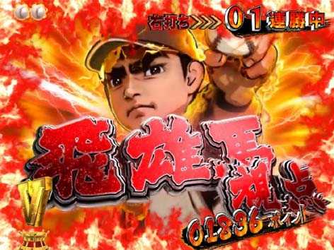 対決するライバルによって期待度が変化し、「花形満」なら大チャンス。リーチ中に「球場ちゃぶ台返し演出」が発生し、頂上決戦リーチへ発展する場合もあり!!