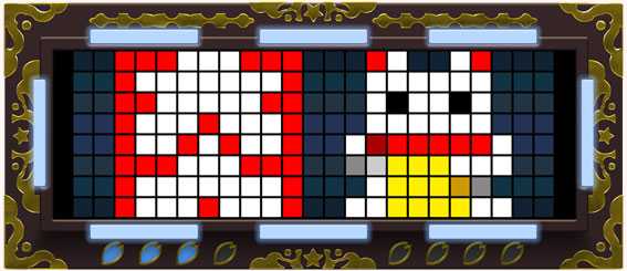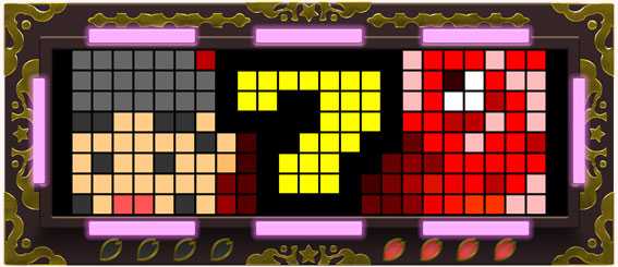 ハズレ図柄を小槌で粉砕。小槌の色で期待度が変化するぞ。