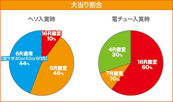 | 確変突入率 | ヘソ入賞時:56% 電チュー入賞時:100% (ST36回転) (ST継続率約65%) |