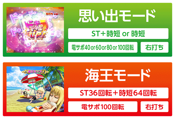 時短40or60or80回転、もしくはST36回転+時短64回転の電サポモード。百裂チャレンジボーナス中の百裂チャレンジ失敗で突入する。滞在中はサブ液晶に表示される思い出モード継続期待度に注目だ。