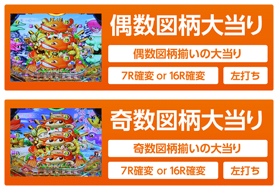 偶数図柄揃い同様、16R昇格や保留内連チャン告知の発生に期待したい。大当り終了後の電サポ(ST+時短)回数は50or100回転。
