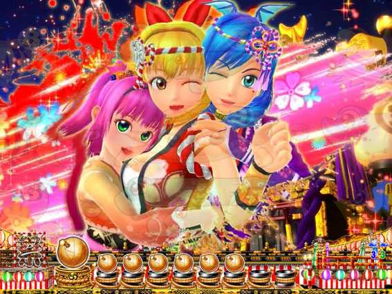 | 変動中演出 | ・咲乱舞予告(ジャパンモード専用) ・烈!花火大会(お祭りモード専用) ・ミニキャラSU予告/SU4(お祭りモード専用) ・キャラカットイン予告(お祭りモード専用) |